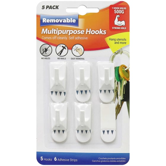 Removable Multipurpose Hooks 5 Pack