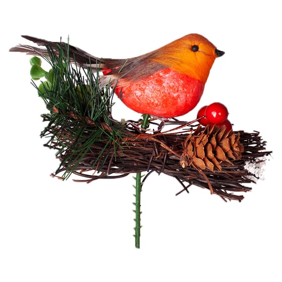 Add some elegance to your home decorations with this beautiful Christmas robin pick. Carefully designed to be able to fit perfectly into any home, it is sure to be a talking point for all of your guests. Display on its own, attach to your Christmas tree, or add to a display with other florals. You will be able to express your creativity and eye for design with the addition of this pick. The natural look of the berries and leaves alongside the pinecone make it look as if it has all been collected on a winter's walk through a forest. Really get into the festive mood with the addition of this stunning pick to your home. Christmas doesn't always have to be about bright colours, sometimes the best decorations are those that have an elegant beauty.