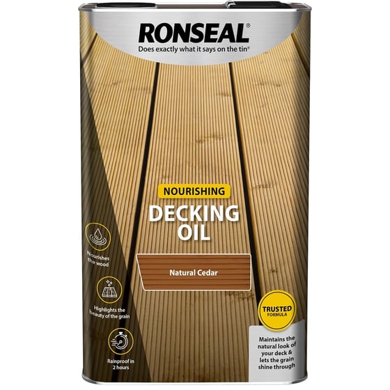 Ronseal's Nourishing Natural Cedar Decking Oil is the ultimate solution for breathtaking, low-maintenance decks. Its potent formula penetrates deep into the wood, nourishing and shielding it from the elements. The natural cedar oil infuses your space with a rich, earthy ambiance that complements any outdoor style. Treat your high-traffic decking to the care it deserves and enjoy a stunning, revitalized surface for years to come.