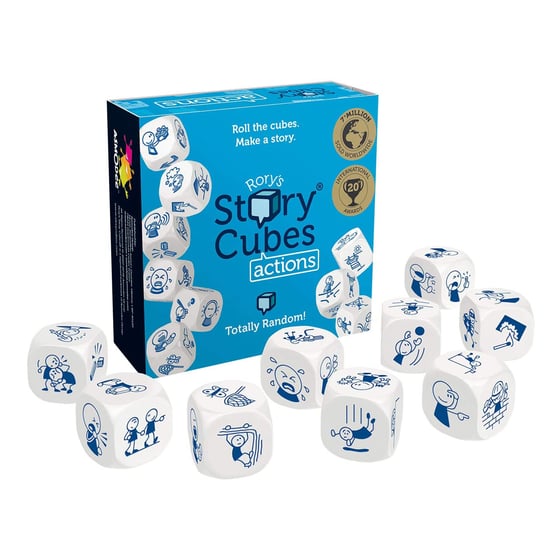 These dice are ideal for creating fun surprise stories. With a total of 54 images you have many combinations to go through which will create a huge variety of outcomes and journeys. There are 9 dice in the pack and the pictures on them are inked in blue, this means if you have more packs of Rory's Story Cubes you can mix them to create even more surprise outcomes and journeys along the way.