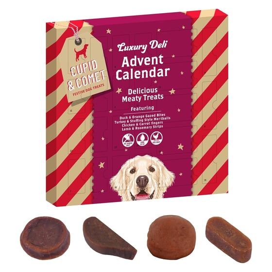 Treat your furry friend to a special festive treat with the Rosewood Cupid & Comet luxury deli dog advent calendar.