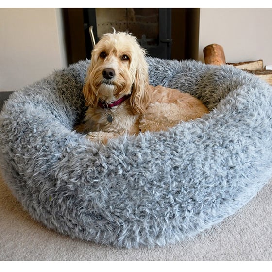 Rosewood Medium Silver Fluff Comfort Dog Bed
