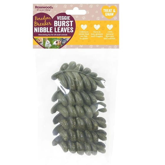The veggie bust nibble leaves from Rosewood feature green coloured treats which are a fun and tasty way to give your rabbits or rodents a delicious and gnawable treat.