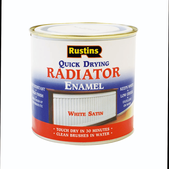 Transform your radiators with Rustins White Quick Dry Radiator Enamel Satin Paint.