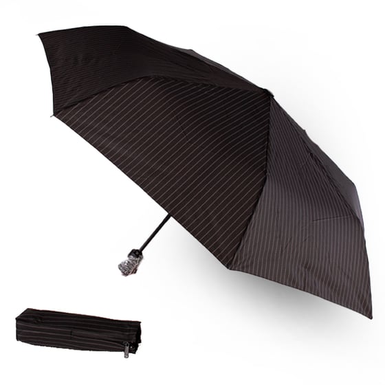 This Xpress umbrella is easy to open, simply press the button and push the umbrella open! Weatherproof portable umbrellas are collapsible, long, and lightweight, making them easy to pack in your umbrella holder or stash in the car! The smart Black and grey dot design is perfect for rainy days!