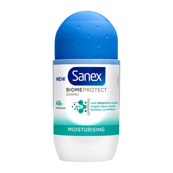 tay Confident And Hydrated With Sanex Biome Protect Moisturising Roll On Deodorant 50ml—Gentle 48-Hour Protection For Sensitive Skin.