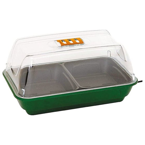 You're able to grow your own fruit and vegetables or germinate seeds with this heated propagator and is ideal for germinating seeds out of season. The gentle eight watt heated base tray provides warmth for young seedlings, whilst the vented lid allows you to control humidity and temperature. Included are 2 21cm trays that sit on a capillary water mat that in turn sits in the electric propagator.