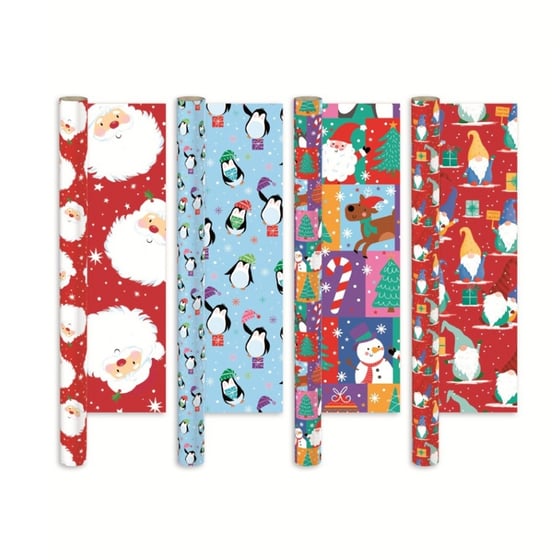 This assorted wrapping paper pack is ideal for those who want variety without compromise. With four metres per roll, you’ll have plenty of paper to cover multiple gifts, while the sturdy finish makes wrapping easier and helps avoid those frustrating rips and tears. The mix of classic Santa faces, playful penguins, snowmen, and gnomes ensures you’ve got something suitable for everyone—from children eager for Father Christmas to friends and colleagues who’ll appreciate a festive touch. It’s a reliable, cheerful choice that makes wrapping simpler, more enjoyable, and much more festive.