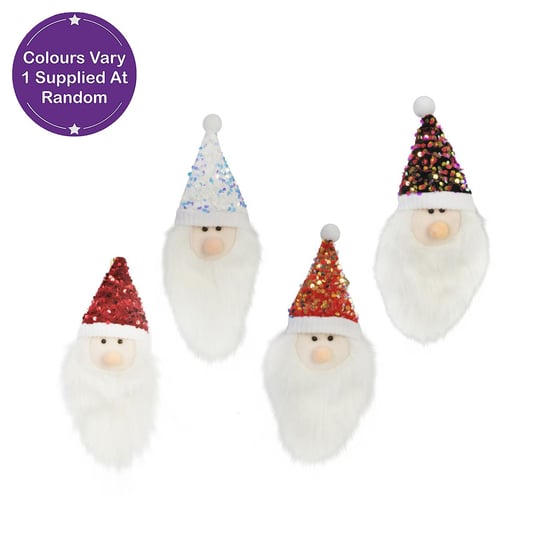 Santa Face With Sequin Hat Tree Decoration Assorted