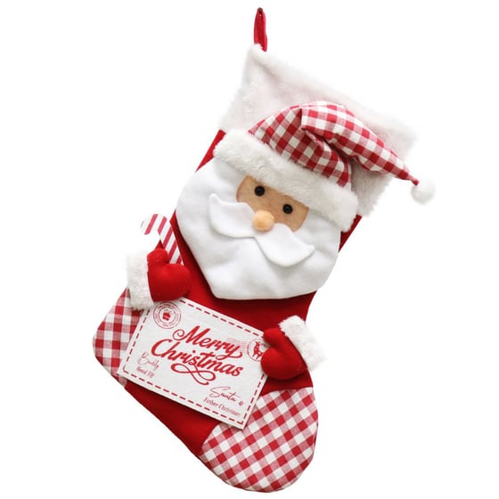 Treat a loved one to a delightful Santa stocking motif which is the perfect finishing touch for your Christmas display thanks to the hanging loop, it can be hung up on the fireplace and can be filled with goodies, treats or toys ready for the big day.