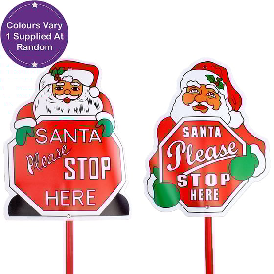 Make sure that Santa comes by your house this year with these fun assorted 'stop here' signs. With an easy-to-place support, you can prop the sign up in your window or stick it in a handy plant pot outside. When Santa is flying around the world on the busiest night of the year, sometimes a little helping hand on the way to show him where to go is all you really need! Perfect for every home, these assorted Santa signs are a brilliant finishing touch to your Christmas decorations in preparation for the big day.
