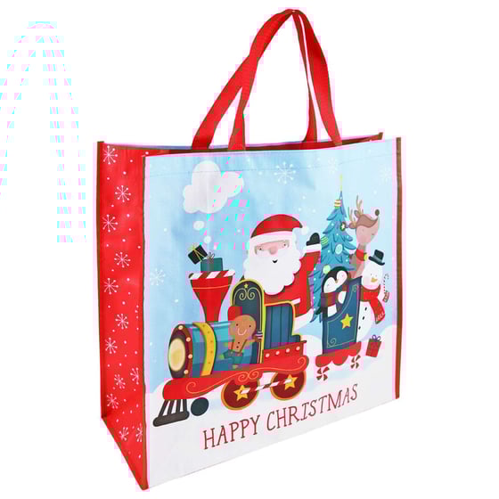 Jumbo Santa Train Square Woven Christmas Gift Bag