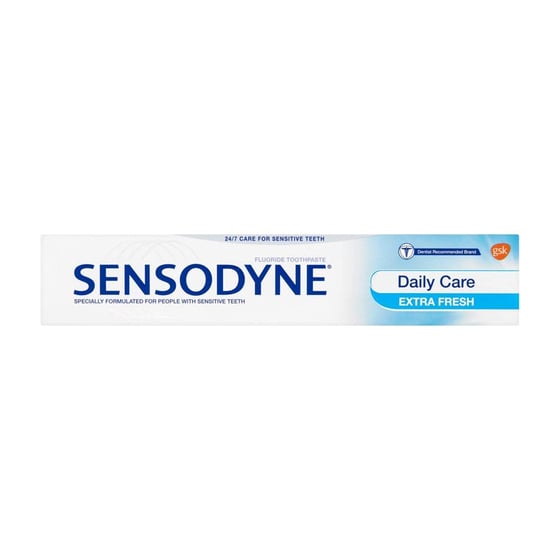 Sensitivity starts with exposed dentine. When enamel is worn away gums recede, the dentine underneath becomes exposed. Dentine is softer than enamel, making teeth with exposed dentine more vulnerable to future problems. This can lead to tooth sensitivity, for example, with hot and cold food and drinks. Sensodyne Daily Care toothpastes have been specially formulated for people with sensitive teeth and can be used every day. It provides all the benefits of regular toothpaste, while providing expert care for sensitive teeth. It contains a mint gel stripe to give you long lasting freshness. Brush twice a day every day to help strengthen teeth, fight tooth decay and promote gum health.