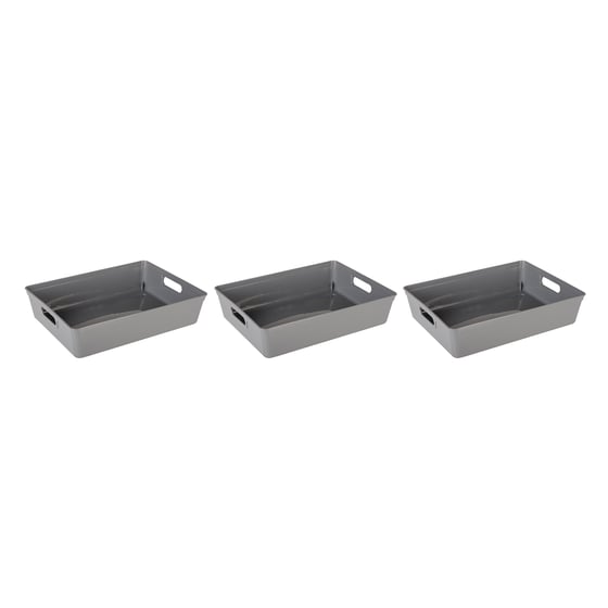 Bring Order To Your Space With A Set Of 3 Grey Shallow Plastic Storage Trays – Stackable, Slim, And Perfect For Everyday Tidy‑Ups