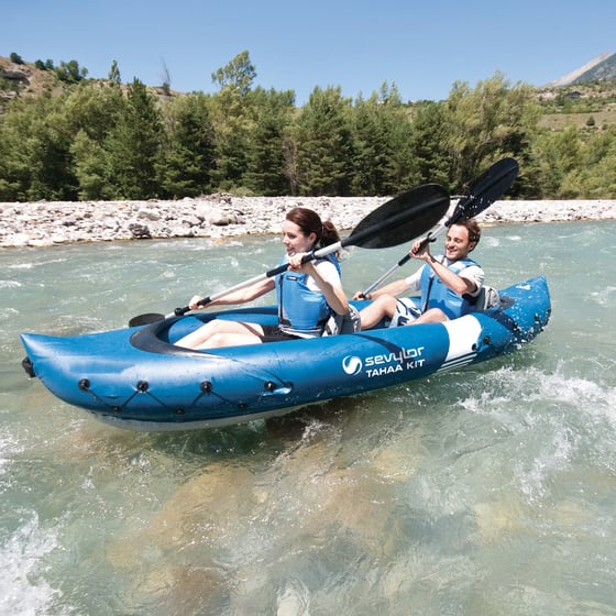 The Sevylor Tahaa kit 2 person inflatable kayak is designed for maximum fun on the water. With its durable construction and comfortable seating for two, you can confidently explore lakes and rivers. Enjoy the freedom of being able to paddle wherever you want and easily transport the kayak to your next adventure.