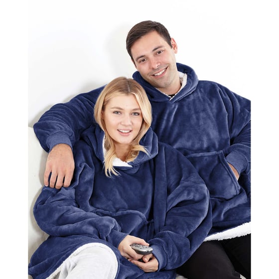 Snuggle into this super-soft blanket hoodie: plush microfleece, big hood and roomy pocket.