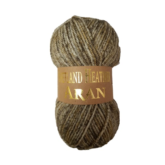 Keep cozy and stylish with the Shetland brown speckled heather aran wool.
