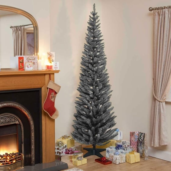 Make A Statement In Small Spaces With The Showtime Grey Norway Spruce Slim Christmas Tree—Stylish, Space-Saving And Perfectly Festive.