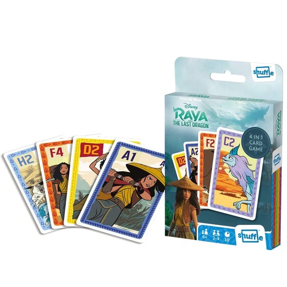 Play with your favourite Raya characters with Shuffle Raya 4-in-1 Card Games! Games include Happy Families, Snap, Pairs, and an Action Game.