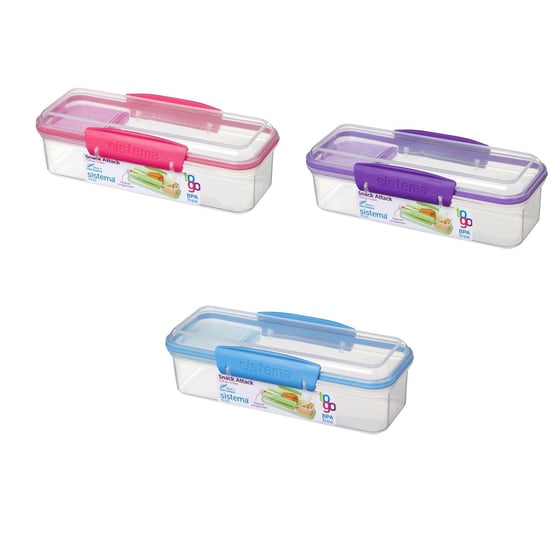 Enjoy fresh and healthy snacks anytime, anywhere with the Sistema snack attack snack container. Food is kept fresh and secure thanks to a tight lid held together by a Klip lid system, so you won't have to worry about your snacks falling out into your bag when the container is shut.