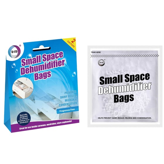 Keep your small spaces dry and free from mould and mildew with our Small Space Dehumidifier Bags 2 Pack.