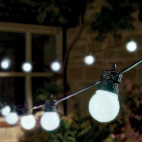 Built for outdoor durability, this festoon light set is weather-resistant and designed to last, with secure sockets and strong cabling for easy installation. You won’t need to worry about fading solar power or replacing batteries—just plug in and enjoy reliable, consistent lighting all year round. Their evenly spaced bulbs ensure balanced coverage and a polished finish, making them a great option for home entertaining, garden décor or special events.