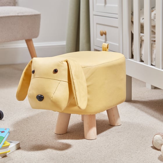 More than just a cute feature, this upholstered dog stool provides a comfortable padded seat for little ones. It is ideal for story time, getting dressed, or simply giving children their own special place to sit. The sturdy wooden legs offer reliable stability, while the compact size makes it perfect for smaller bedrooms and playrooms. Lightweight enough to move around easily, it can be placed beside a bed, near a bookcase or in a play area. Whether you are shopping for your own home or looking for a thoughtful baby shower or birthday gift, this yellow dog footstool delivers practical children’s seating with character.
