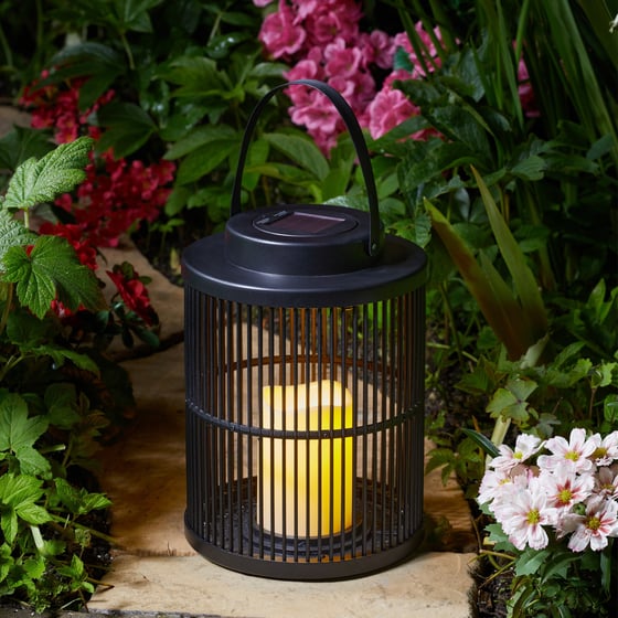 Add a touch of elegance within any outdoor space with the delightful black urbane lantern from Smart Solar which can be used as either a tabletop or hanging lantern. The beautiful contemporary lantern features a warm white LED with a flickering effect candle for everyone to admire.