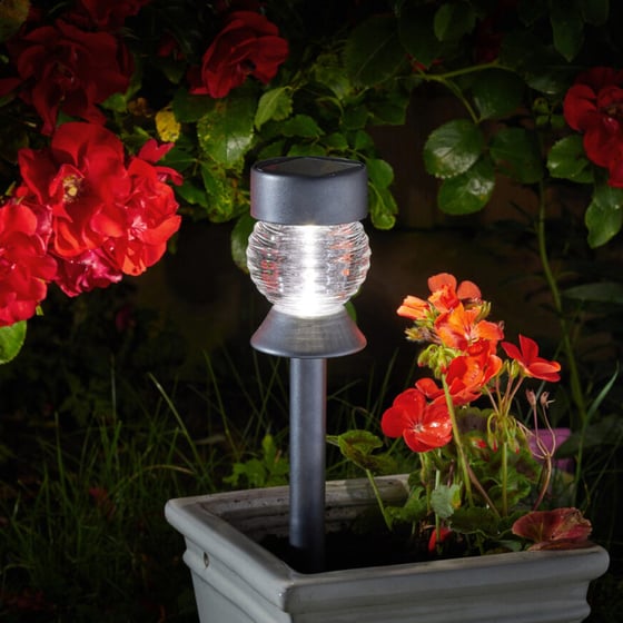 The stake light automatically adjusts brightness according to the amount of daylight received during the day to provide light all year round. The crystal light will create a uniform finish, flooding your area with 5 Lumens of SuperBright light.