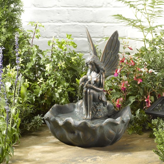 Add a decorative touch to any corner within your outdoor areas with this delightful bronze-effect water fountain which features a graceful fairy figure playing in the water which makes it a charming addition to any outdoor space.