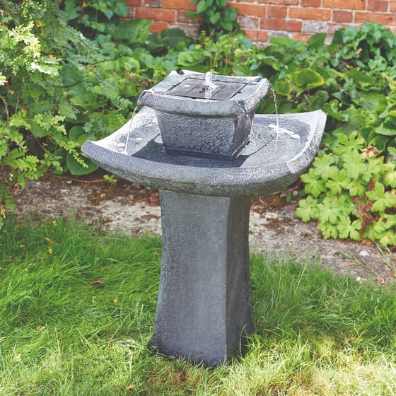 The solar-powered fountain is wire-free with no installation required and works within direct sunlight when the fountain recycles the water making it perfect for a hot summer's day. The fountain utilises a low voltage solar pump to constantly re-circulate water from the main bowl reservoir. The garden fountain features a lightweight durable design means it can easily be installed and relocated to different areas of your garden.