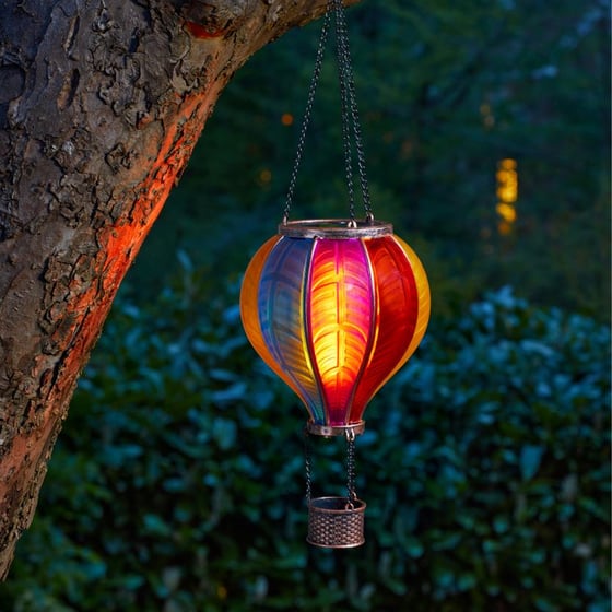 Transform your outdoor space with this enchanting solar-powered LED hot air balloon hanging lantern. Perfect for gardens, patios, and outdoor entertaining areas, this charming light fixture combines whimsical design with practical functionality. During the day, the solar panel efficiently harnesses sunlight, automatically illuminating the LED lights as dusk falls. The hot air balloon design creates a magical ambiance, casting a warm, gentle glow that adds character to your garden setting. This hanging lantern requires no wiring or electricity, making it simple to install and relocate as needed. The durable construction ensures it withstands various weather conditions, while the LED technology provides long-lasting illumination. Whether suspended from tree branches, pergolas, or shepherd hooks, this decorative light brings a touch of wonder to your outdoor sanctuary. It's an ideal choice for creating a cosy atmosphere during evening gatherings or adding a distinctive decorative element to your garden landscape.