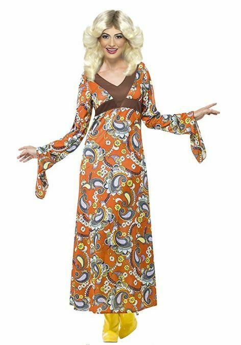 Smiffys Adults Costume 70s Disco Woodstock Maxi Dress