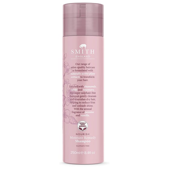 The Nourish moisture remedy hair shampoo from Smith England is perfect for everyday use with deeply hydrated hair and has been formulated with fragrances including jasmine and vanilla to leave hair smelling fragrant all day.