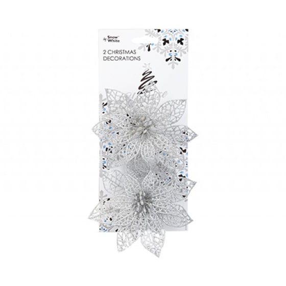 Snow White Poinsettia Flower Decorations 13cm 2 Pack Assorted
