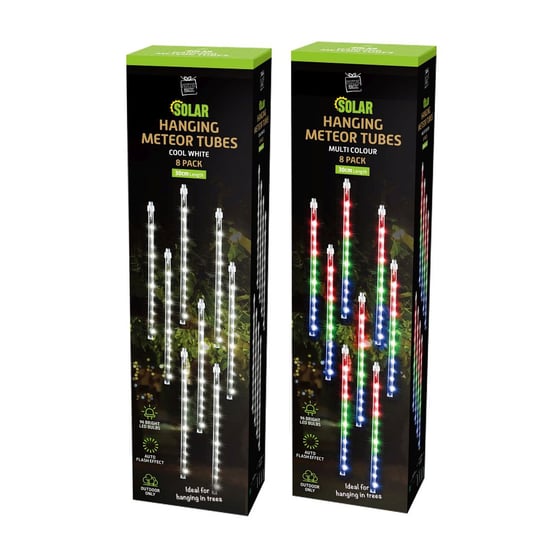Create A Striking Meteor Shower Effect In Your Garden With The Solar LED Meteor Tube Lights 8 Pack And Add A Unique Festive Glow.