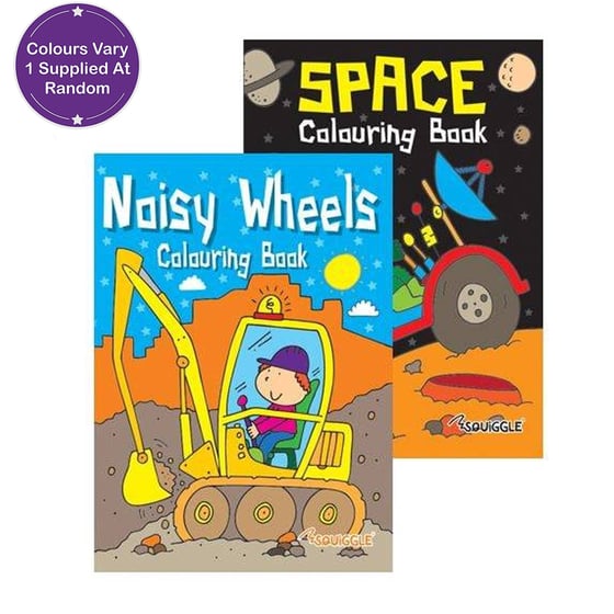 These popular Space and Noisy wheel colouring designs are loved by young children, age 3-10.