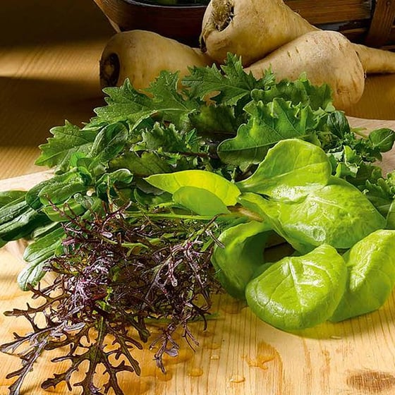This leaf mixture can be sown up to October outdoors for picking leaves over winter and can be sown through the winter under glass or on a windowsill.