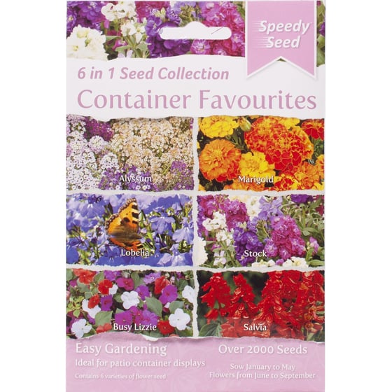 Contains seeds for Alyssum, Mangold, Lobelia, Stock, Busy Lizzie and Salvia.
