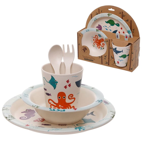 This complete children's dining set combines a fun sea creature design with great eco-friendly credentials.