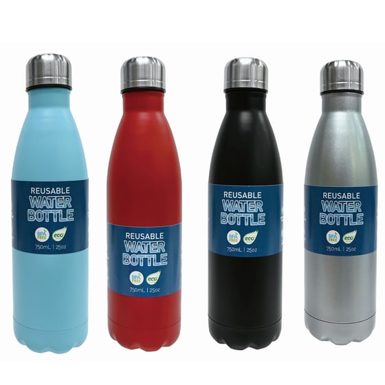 Stay hydrated in style with this sleek 750ml stainless steel water bottle. Crafted from durable stainless steel, this reusable bottle is perfect for your daily hydration needs at work, gym, or during outdoor activities. The BPA-free construction ensures your beverages remain pure and fresh-tasting, while the substantial 750ml capacity means fewer refills throughout your day. The bottle's robust design is built to withstand daily use, making it an excellent alternative to disposable plastic bottles. Whether you're sipping cold water during your workout or keeping your beverages at the desired temperature, this versatile bottle is up to the task. Its practical size fits most standard cup holders and bag bottle pockets, making it an ideal companion for your active lifestyle.