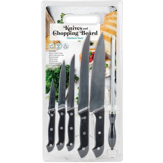 Effortlessly Chop, Slice, And Dice With This Knife Set! This Set Includes A Variety Of Knives To Handle All Your Cutting Tasks, And Comes With A Chopping Board.
