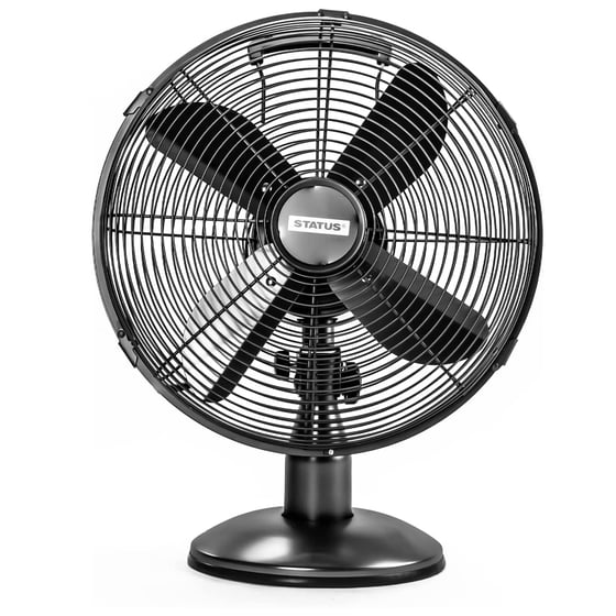 Cool yourself down effortlessly at home or in the office with this 12'' oscillating black desk fan from Status which features a contemporary design in a stylish satin black colour and is also practical thanks to the sleek design.