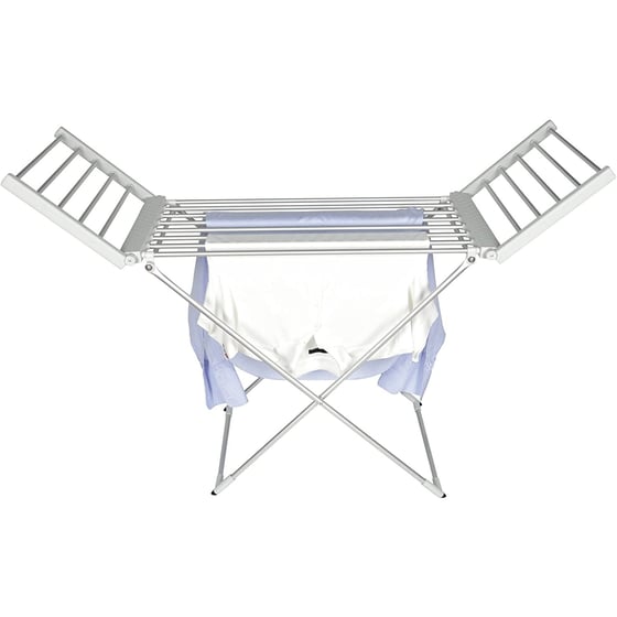 For all your clothes drying needs, the portable clothes airer from Status is the perfect solution in smaller homes where there's limited space. The clothes airer comes with wings and 18 heated aluminum bars giving you a huge 10.8 metres of drying space.
