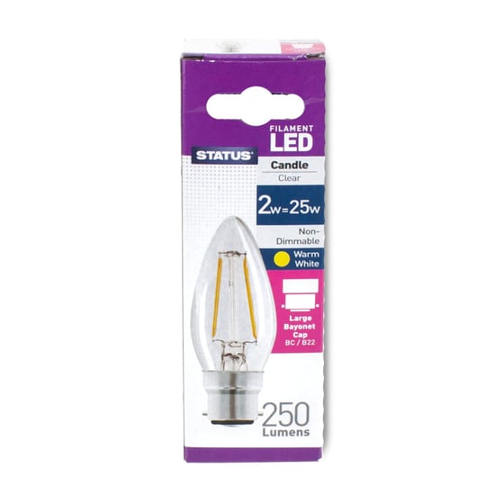 Status Warm White Filament LED BC Candle Bulb BC 2w=25w