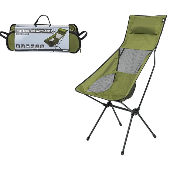 This high back forest green chair from Summit is the perfect accessory to take with you when camping, at the beach or at a festival for comfort and relaxation. The high back design allows you to completely stretch out your legs as you lean back making it ideal for chilling back after a busy day outdoors.