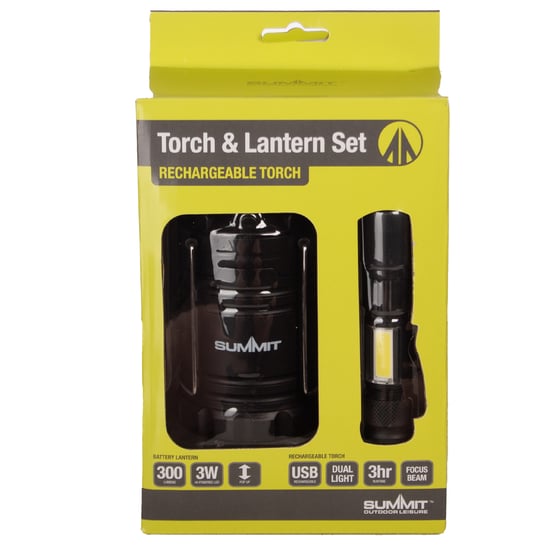 Stay Ready For Anything With The Summit Rechargeable Torch And Lantern Set—Dual Brightness For Outdoor Adventures Or Power Cuts.