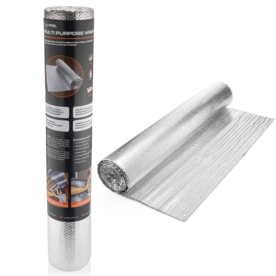 The insulation roll is multi-layered and has been made from 3 layers of air bubble insulation roll with coated aluminum sides. This ensures that the insulation roll doesn't corrode and makes it more durable. The foil is reflective aluminum facing which allows the insulation to act as a radiant barrier and reflect the heat back into the building. When installed, the insulation roll will increase the thermal performance within your home and will reduce mould and dampness while also minimizing draughts.