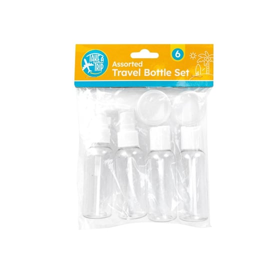 Make your travels hassle-free with the Take A Trip Assorted Travel Bottle Set. This practical 6-pack collection provides the perfect solution for carrying your essential liquids whilst staying compliant with airport security regulations. Each set includes six versatile containers, ideal for decanting your favourite shampoos, conditioners, lotions, and other personal care items. The assorted sizes ensure you have just the right amount for your journey, whether it's a weekend getaway or an extended holiday. These travel-friendly bottles help eliminate the need to purchase full-sized products at your destination or carry bulky containers in your luggage. The set's practical design makes it a must-have accessory for frequent travellers, gym-goers, or anyone who needs portable containers for their daily essentials. Keep your toiletries organised and your travels streamlined with this convenient bottle set.