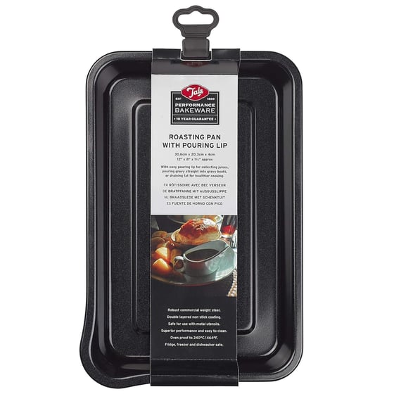 Easily roast your favourite dishes with the Tala black roasting pan. This high-quality roasting pan features a convenient pouring lip, making it easy to transfer your cooked food onto plates or serving dishes. Prepare delicious meals with ease and impress your guests.